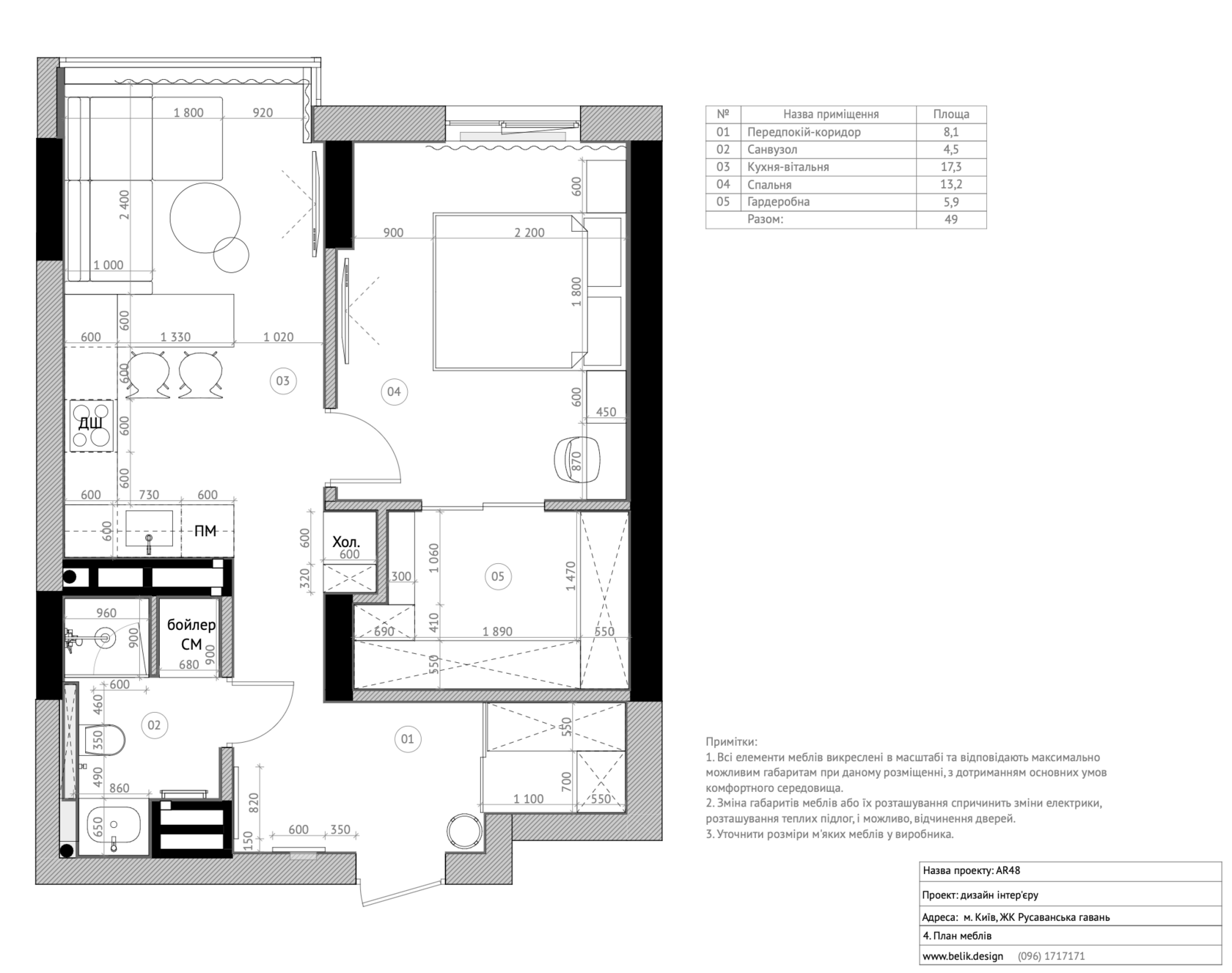 ПРОЕКТ ОДНОКІМНАТНОЇ КВАРТИРИ ЖК РУСАНІВСЬКА ГАВАНЬ