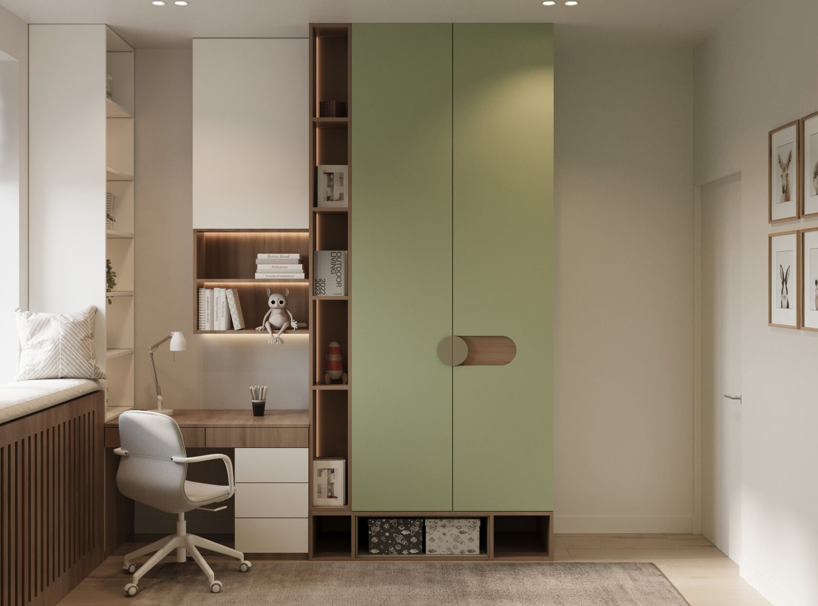 Дизайн приватного будинку у с. Софіївська Борщагівка (як на першому, так і на другому поверхах) передає загальну концепцію. Безумовно, оформлюючи дитячі кімнати враховувалися: стать, вік, потреби та індивідуальні інтереси дитини. Дитячі (їх дві) оформлені у більш яскравих та насичених кольорах. Використовувалися цікаві елементи, ручні меблі та методи декорування.