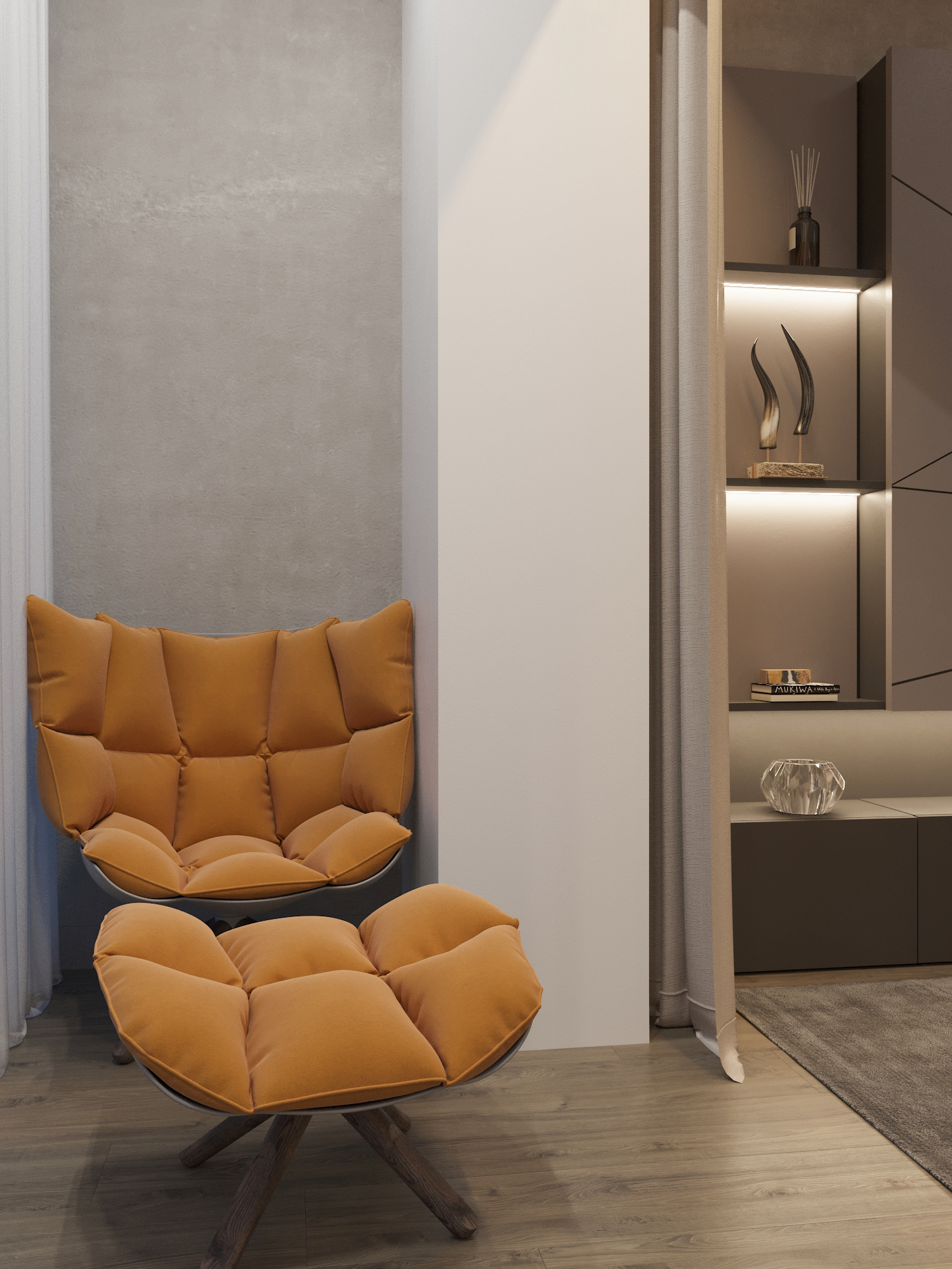 Цей об'єкт варто вважати досить стильним та сучасним. Тут вирує атмосфера бездоганного смаку, мужності та витриманості. Замість романтичних та максимально легких фактур було обрано інших шлях.