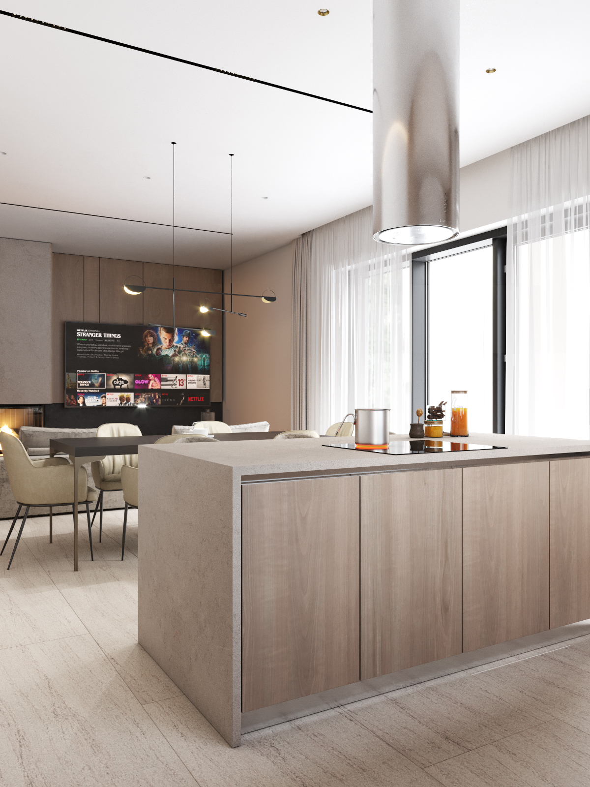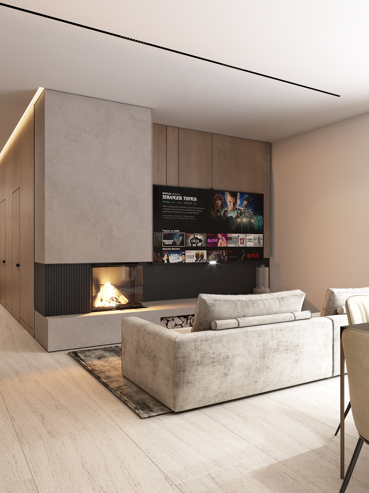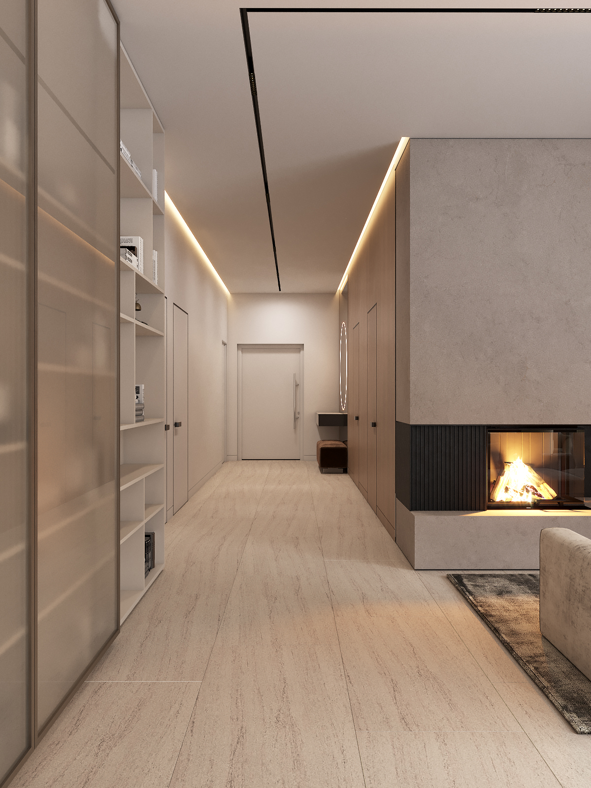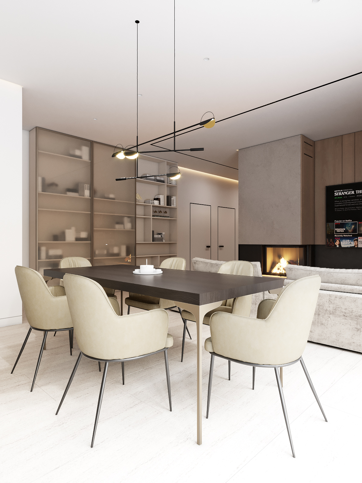 ДИЗАЙН ВІТАЛЬНІ З КАМІНОМ У ЗАМІСЬКОМУ БУДИНКУ У С. НОВОСІЛКИ В КИЇВСЬКІЙ ОБЛАСТІ