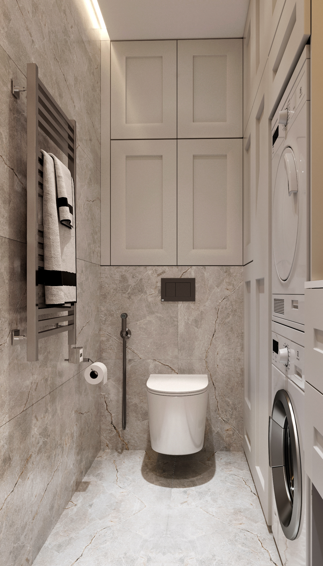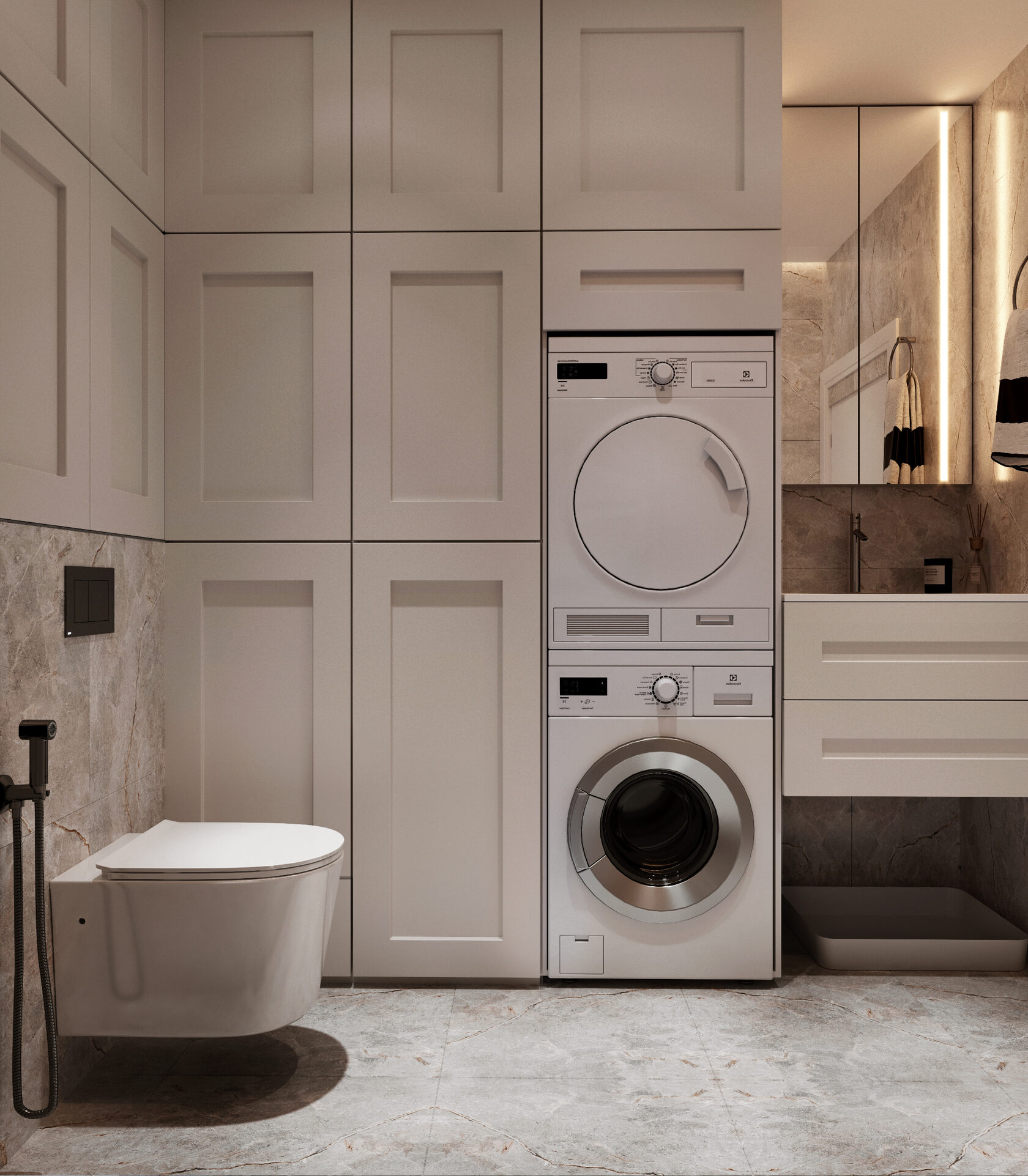Важливо розуміти, що для цієї квартирі зроблені всі меблі на замовлення. Це забезпечило єдиний стиль в кожній з кімнат.Також дозволило максимально використали кожний м2. Було виконано прихований монтаж, де це можливо. Вертикальне фрезерування на фасадах тумб — це один із найдорожчих та найпопулярніших трендів у дизайні меблів.