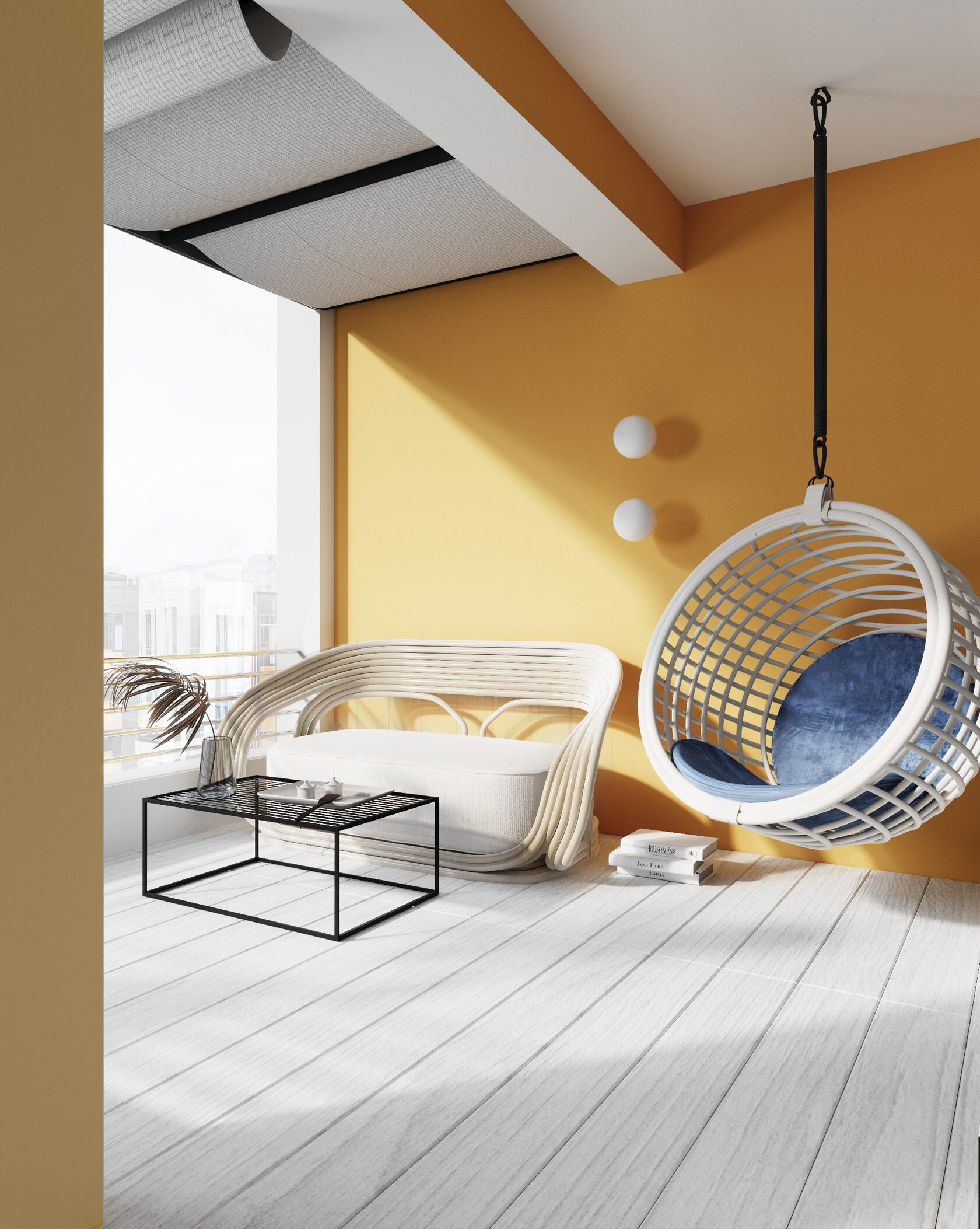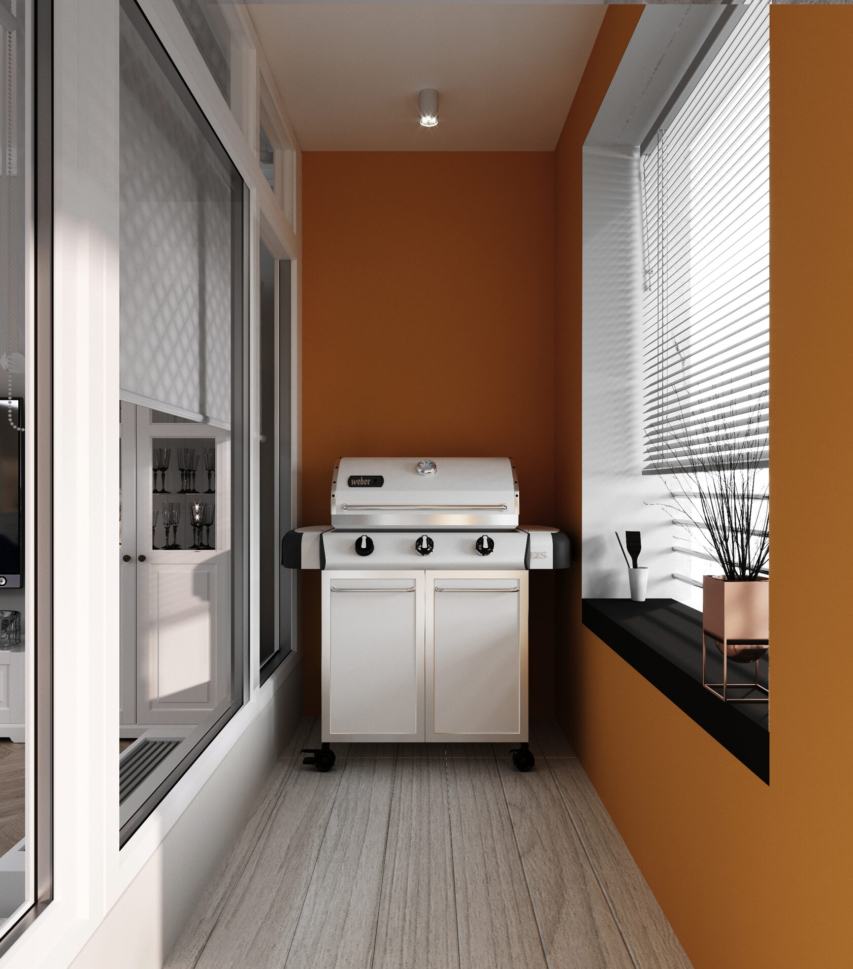 З кухні ви можете потрапити на терасу. Тут була створена зона для відпочинку, з підвісними кріслами-коконами. Окремо стоїть гриль, що дозволяє готувати їжу на вогні безпечно та в будь-яку пору року.
